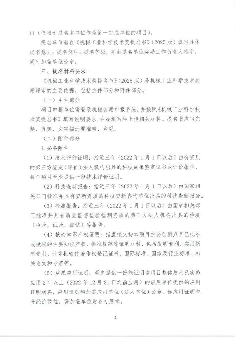 關于開展2025年度“機械工業科學技術獎”提名工作的通知